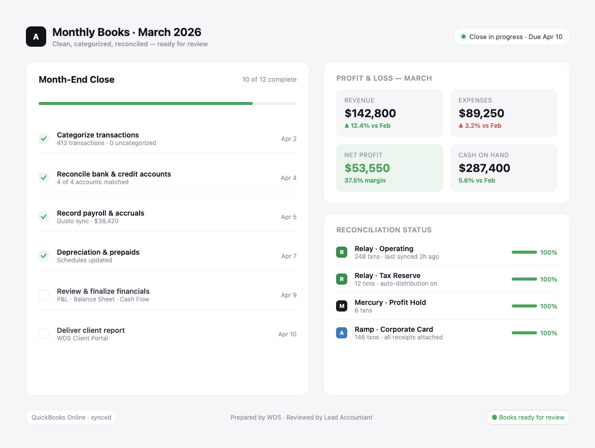 Books that are ready when tax season hits. No scrambling, no surprises.